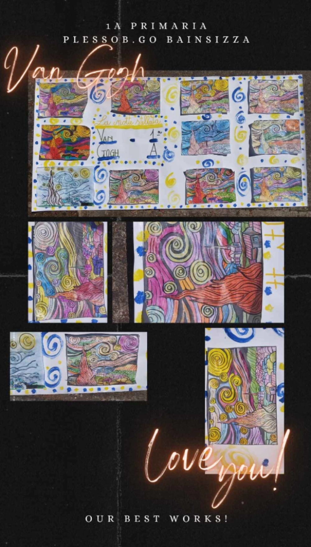 Gli alunni della classe 1A della scuola primaria di Borgo Bainsizza hanno riprodotto "La notte stellata" di Vincent Van Gogh.